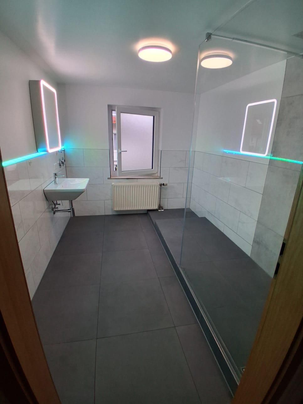 - Grundierung und Abdichtung nach DIN-Norm (Nassbereich, Duschzonen, Bodenflächen)